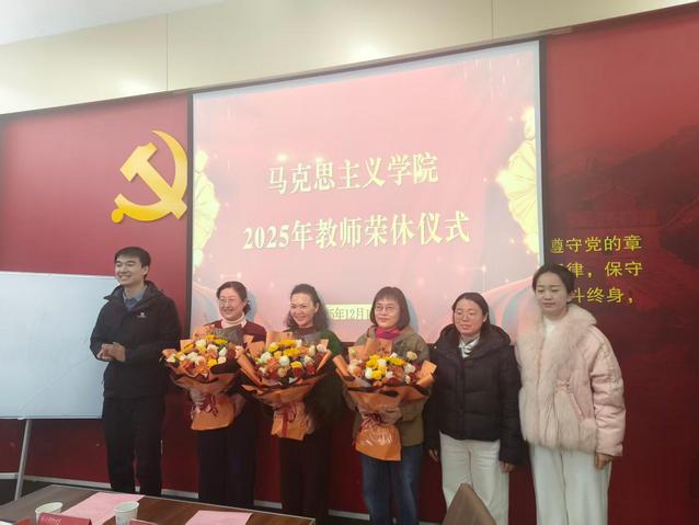 12月10日上午,马克思主义学院在鸿远楼511会议室举行2025年教师荣休仪式。荣休教师鹿锦秋、周静、王雁,校工会主席陈学星、离退休工作处副处长张成宝、学院党委书记郭万保、副院长李先伦和部分教师、学生代表参加仪式。
