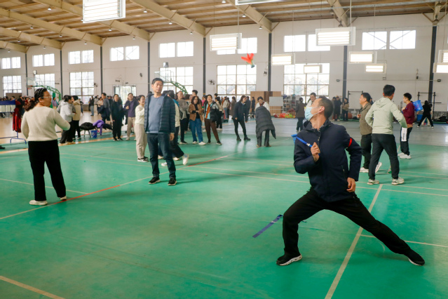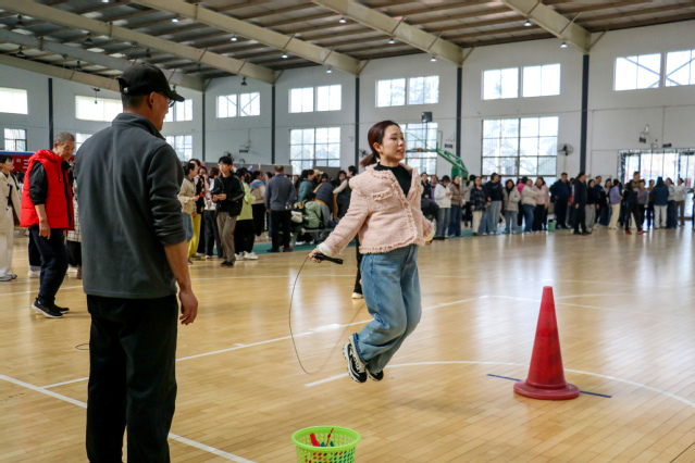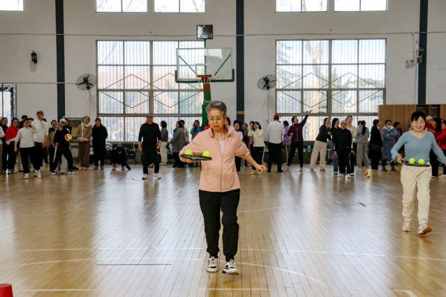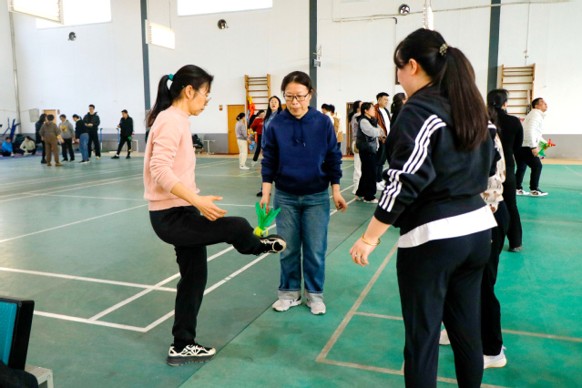 本次比赛设综合接力、海底捞月、背向投毽入筐、四人踢毽子、足球射门等5个项目。场馆内,选手配合默契,毛毽在空中划出优美弧线,绳影翻飞身轻如燕,传球妙趣横生,在方寸之间展现出团队的凝聚力,共同绘就了一幅生机勃勃、趣味盎然的春趣图。